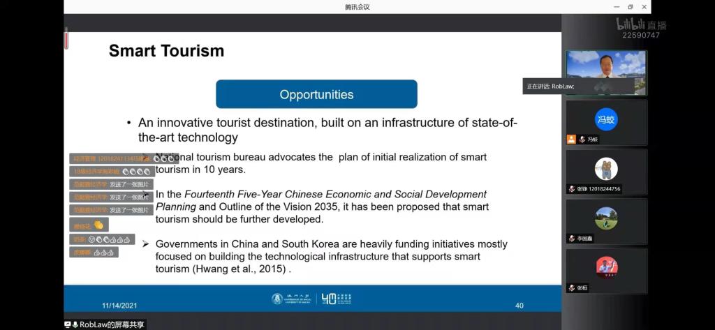 太阳集团tyc5997贺兰山特聘学者、哈尔滨工业大学李国鑫教授为本次讲座致开幕词。她表示,Rob Law教授是国际顶尖的旅游营销学者,相信大家在讲座中会大有收获。此外,本次讲座为贺兰山论坛·数字营销系列的开端,希望大家积极参与到讲座中来,不断提升自身的学术视野和能力。本次讲座主要围绕酒店网站功能展示、基于APP的智能旅游、机器人场景运用三个主题展开。