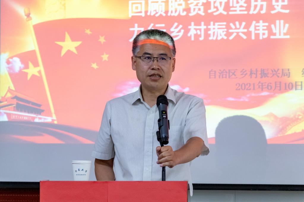 为强化党史学习教育,加强党员党性培养。6月10日下午,太阳成集团tyc5997邀请自治区乡村振兴局政策法规处续建军处长于贺兰山校区文荟楼316报告厅做题为“回顾脱贫攻坚历史,力行乡村振兴伟业”的讲座。自治区乡村振兴局政策法规处处长续建军、太阳成集团tyc5997(西部发展研究院)院长杨国涛、全体教职工党员和部分学生党员到场参加。本次讲座由杨国涛主持。