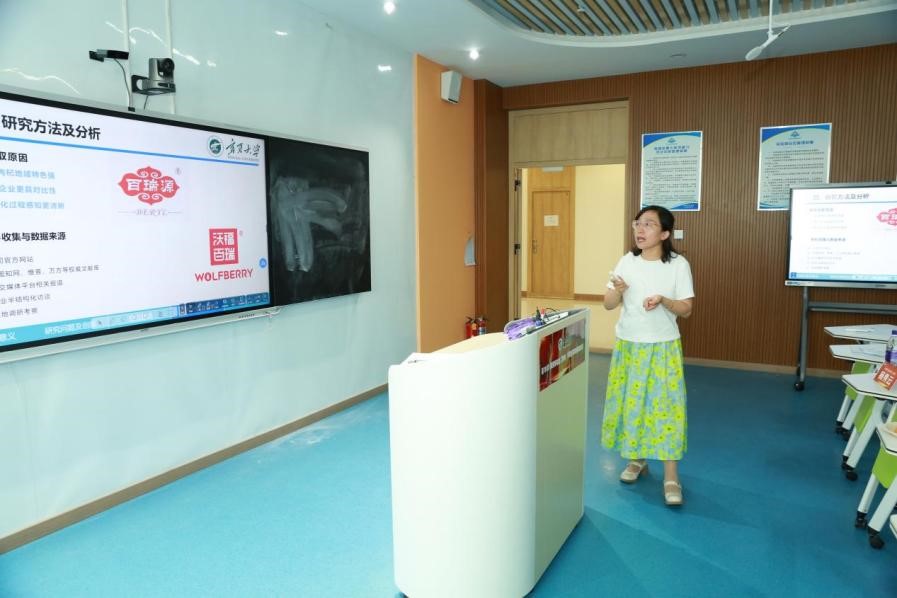 张淑萍老师团队汇报了论文《数字化转型背景下西部地区特色农产品加工企业营销渠道转型双案例研究——以宁夏枸杞企业为例》。论文以宁夏枸杞龙头企业为例,试图通过双案例研究探索西部地区特色农产品企业营销渠道转型的升级路径。研究表明,数字化背景下农产品加工企业营销渠道转型是由“价值主张--价值共创--价值捕获”串联起来的价值创造过程,通过多渠道转型、跨渠道转型到全渠道转型完成营销渠道转型的动态迭代,从而构建了农产品加工企业渠道转型模型。点评嘉宾提出案例分析工作做得非常充分,同时题目契合西部地区特色,有一定的研究意义,可以进一步丰富文章内对相关现象的具体解释以优化内容,点评嘉宾同时对论文进一步深入研究的方向提出了相关建议。
