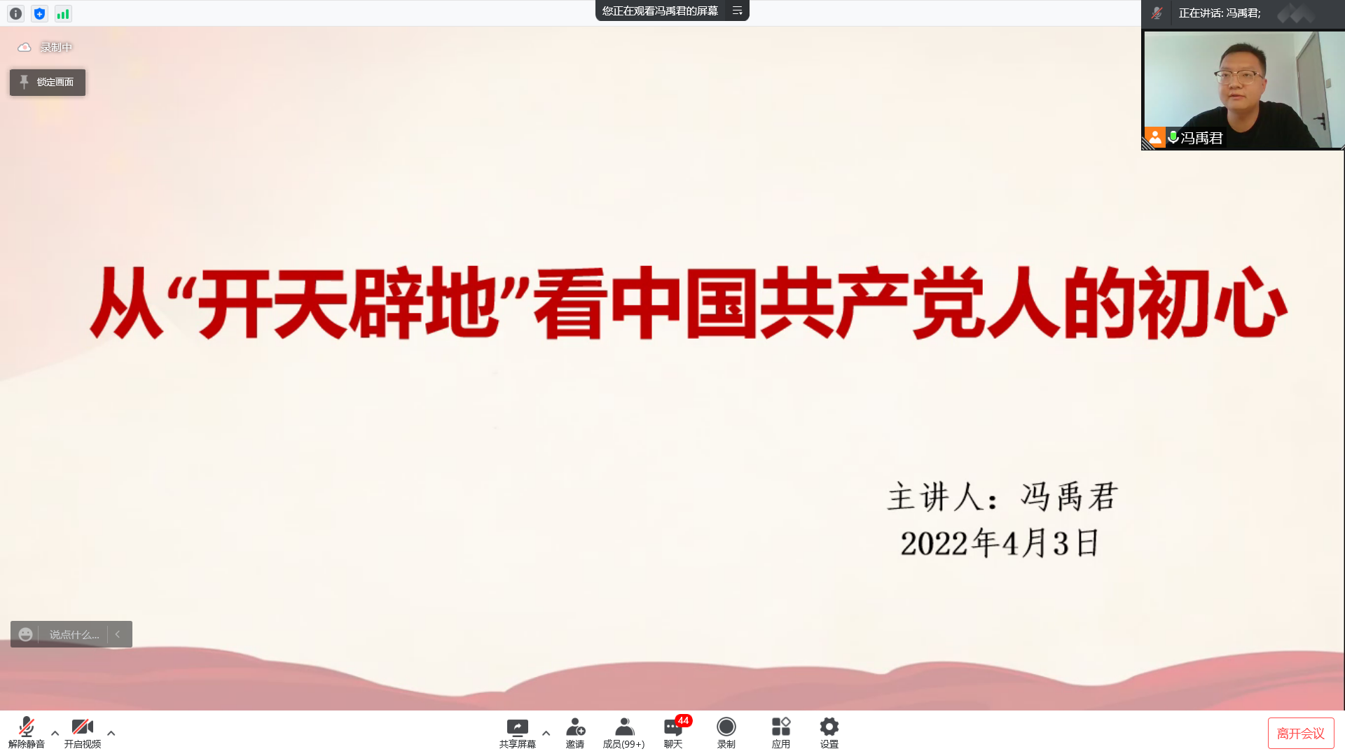 4月3日,太阳成集团tyc59972022年分党校培训第二讲在线上顺利举行。本次培训应邀太阳集团tyc5997党委宣传部冯禹君担任主讲,全院176名入党积极分子、发展对象参加了培训会。
