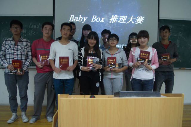 【太阳成集团tyc5997传媒中心讯 郑环磊/文】为了丰富大学生业余生活,让同学们在紧张的学习生活之余放松心情、感受生活,太阳成集团tyc5997团委学生会社团部举办了Baby Box 杯推理大赛。推理大赛决赛于5月7日晚在文科楼132隆重举行,学生会主席团成员陈安琪等作为评委参加了此次活动。 经过初赛、复赛的选拔,共有十个小组脱颖而出,登上今晚决赛舞台。本次比赛共有三个环节,第一环节是卡片数字游戏,即根据PPT展示的三十张图片猜出对应的数字。第二个环节就是大家熟悉的“你划我猜”。此环节为抢答部分,比赛进行的异常激烈,整个赛程高潮不断,掌声此起彼伏。最终,非凡异族与阿兹卡班两队晋级到决赛最后一个环节——谁是凶手。在观看悬疑视频后,两队辩手正式开始答辩,迅速将会场温度点燃。双方你来我往,言辞犀利,就“到底谁的是凶手”这个主题展开激烈辩论。在这个过程中,双方选手的口才和应变能力展现的淋漓尽致,同时也将决赛又一次推向高潮。最后,阿兹卡班队在经过激烈的竞争后成功夺冠。
