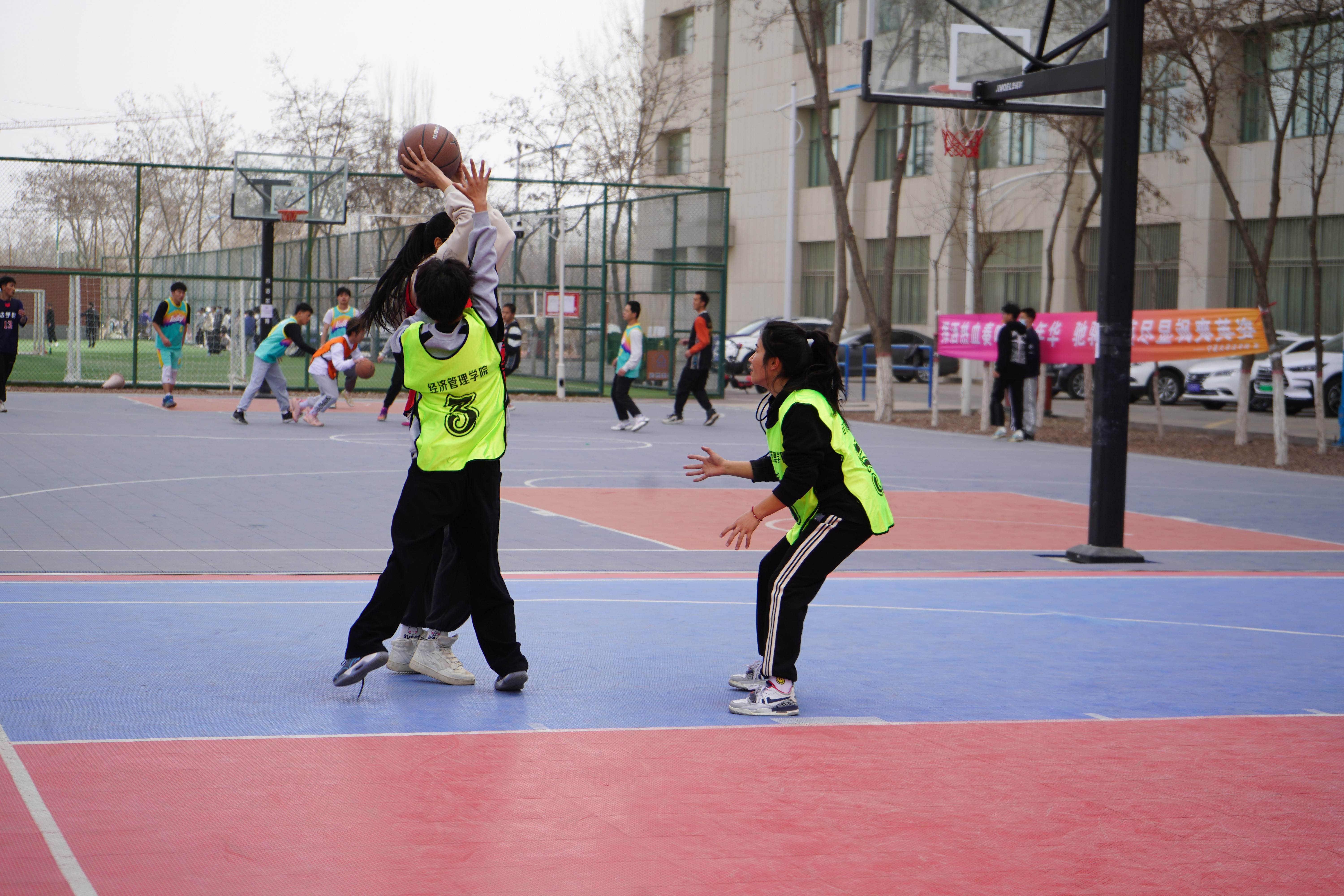 在女子篮球小组赛中,2022级经济系代表队以12:10险胜2021级管理系;2022级会计系代表队以8:10惜败2021级会计农经联合代表队;2022级管理系代表队以10:28不敌2021级经济系代表队。