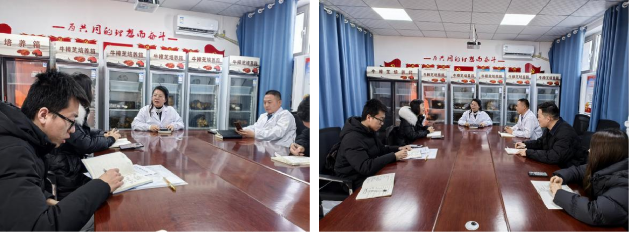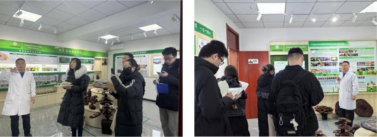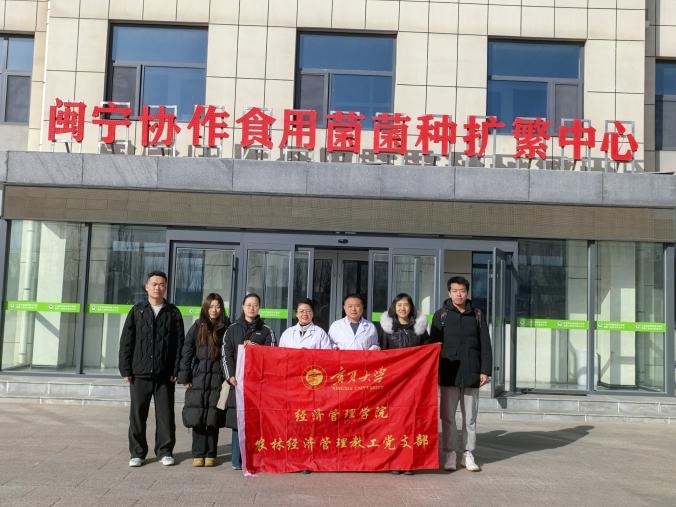 为深化党建与专业实践融合,推动农林经济管理专业研究生在乡村振兴背景下的创新育人模式。2026年1月12日,由我院农林经济管理教工党支部组织党员老师及4名研究生赴宁夏大武口区食用菌资源与种质创新工程技术研究中心,开展主题党日活动。本次活动以“党建引领、学用结合”为主题,旨在通过实地参观、技术讲解与座谈交流,引导研究生在一线科研场景中理解现代农业科技,感悟产业振兴路径。